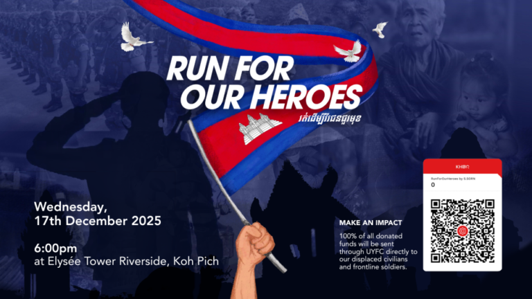 រត់ដើម្បីវីរជនជួរមុខ សូមអញ្ជើញអ្នករត់ និងសាធារណជនមកជួបជុំគ្នានៅថ្ងៃពុធ ទី១៧ ខែធ្នូ ឆ្នាំ២០២៥ វេលាម៉ោង ៦:៣០ ល្ងាច នៅទីក្រុង កោះពេជ្រ សម្រាប់ការរត់ជុំគ្នាចម្ងាយ ៣ គីឡូម៉ែត្រ ដើម្បីសាមគ្គីភាពជាមួយវីរជនជួរមុខ និងប្រជាជនស៊ីវិលដែលបាត់បង់ទីជម្រករបស់កម្ពុជានៅតាមព្រំដែន។ ការរត់នេះនឹងប្រព្រឹត្តទៅនៅក្នុងទីក្រុងកោះពេជ្រ ដោយចាប់ផ្តើមនៅអគារ Élysée Tower…